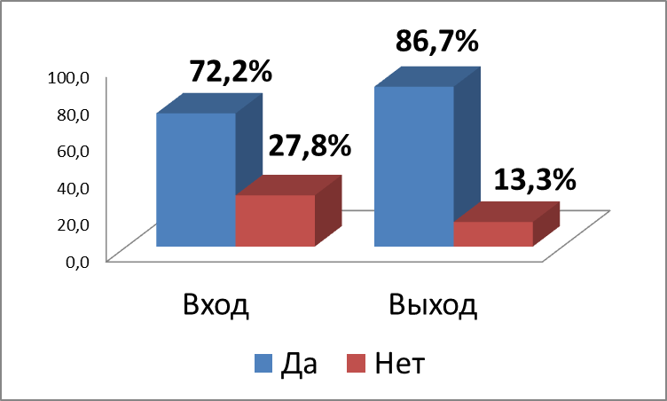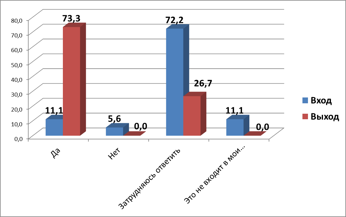 После обучения 73,3% слушателей считали, что смогут повысить удовлетворённость свей профессиональной деятельностью. Это оказалось в 5,6 раза выше, чем было до обучения. До обучения – 11,1% удовлетворены своей профессиональной деятельностью, после обучения – 73,3% думают, что смогут повысить удовлетворённость своим трудом (рисунок 12).