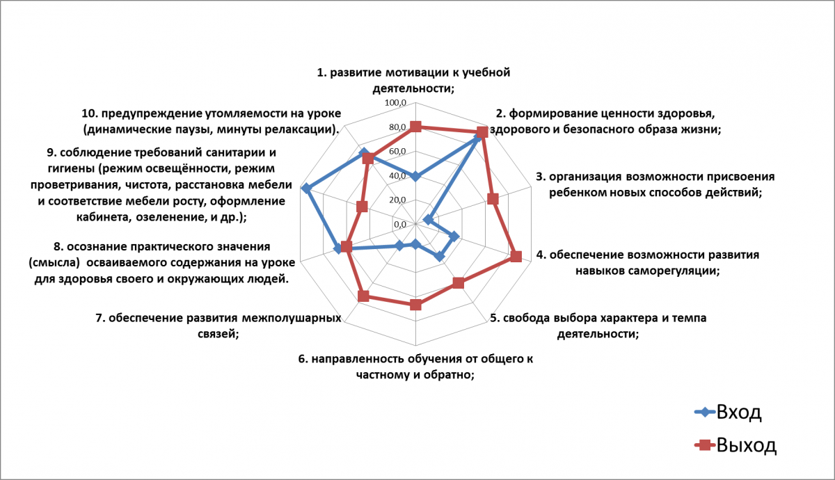 Рисунок 11. Динамика представлений о характерных чертах здоровьесберегающей учебной деятельности.