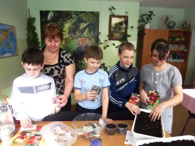 Так как детям школьного возраста свойственна высокая познавательная активность, направленная в окружающий мир, им интересен широкий круг явлений социальной и природной действительности. Они стремятся к общению с природой. Для удовлетворения этих потребностей мною в образовательный процесс был введён экологический курс «Здоровье человека и окружающая среда». В рамках этого курса проводятся экологические акции, экологические игры, экологические вечера, осенние балы, праздники, посвященные датам экологического календаря: День Птиц, День Земли и т.д. Например, для того, чтобы повысить интерес воспитанников к явлениям природы и эстетического восприятия окружающего мира мною была задумана и проведена экологическая акция «Просыпайся, Земля!», посвященная Дню Земли. Дети вместе со мной трудились по очистке территории от мусора, оставшегося после зимы, окапывали деревья, организовывали цветники, причем делали это с огромным желанием и без принуждения.