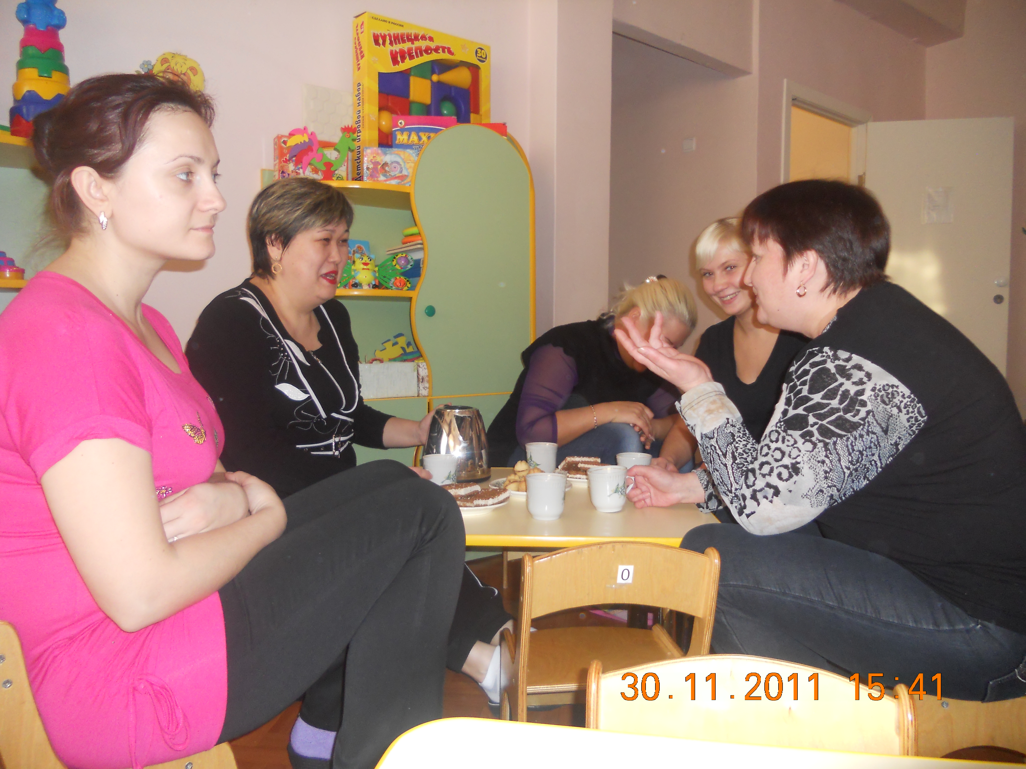 Родительские собрания проводятся за чаепитием. Большинство родителей приходят на такие встречи после трудового дня, и в такой неформальной, теплой, почти семейной обстановке люди чувствуют себя свободнее, легче делятся своими наболевшими проблемами.