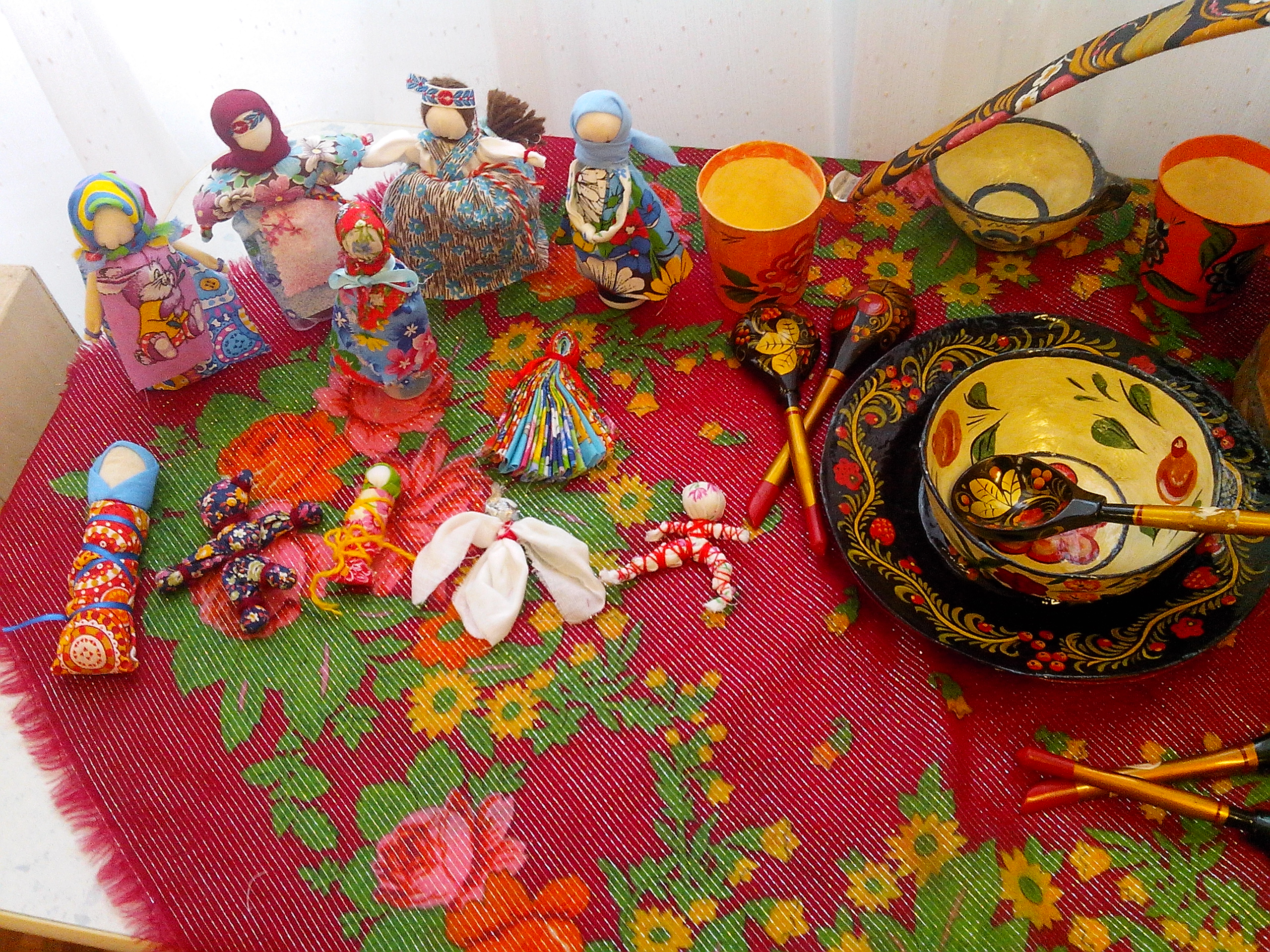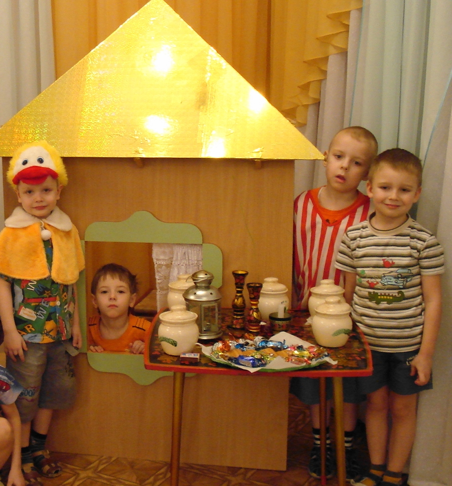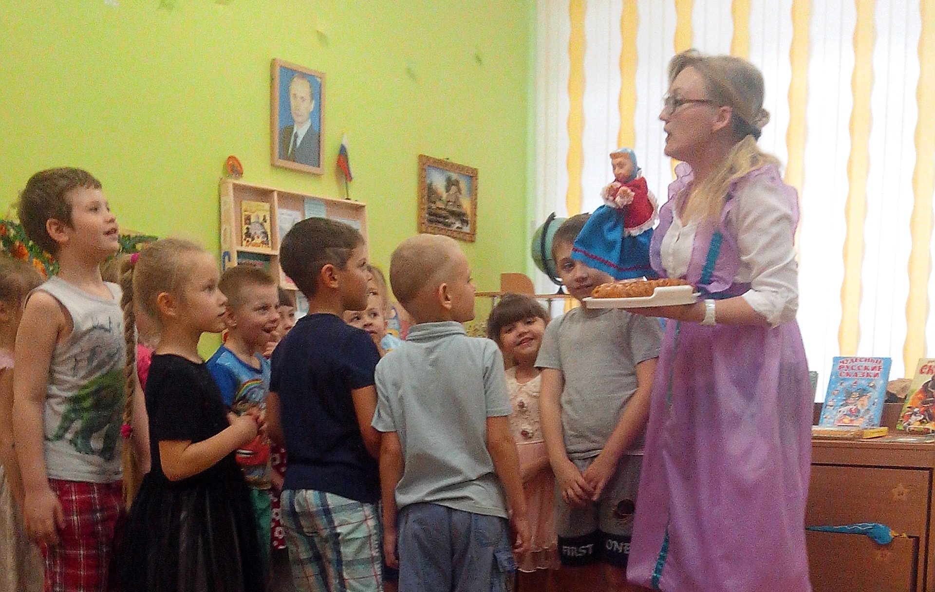 Загадки использую на всех занятиях для проверки знаний, наблюдательности, сообразительности. В группе есть различные виды театров по сюжетам русских народных сказок, «Уголок ряженья» с костюмами для инсценировок. В группе также оформлена библиотека с русскими народными сказками, потешками, загадками, пословицами. Родители группы принимают активное участие в конкурсах поделок, создании костюмов и атрибутов для инсценировок.