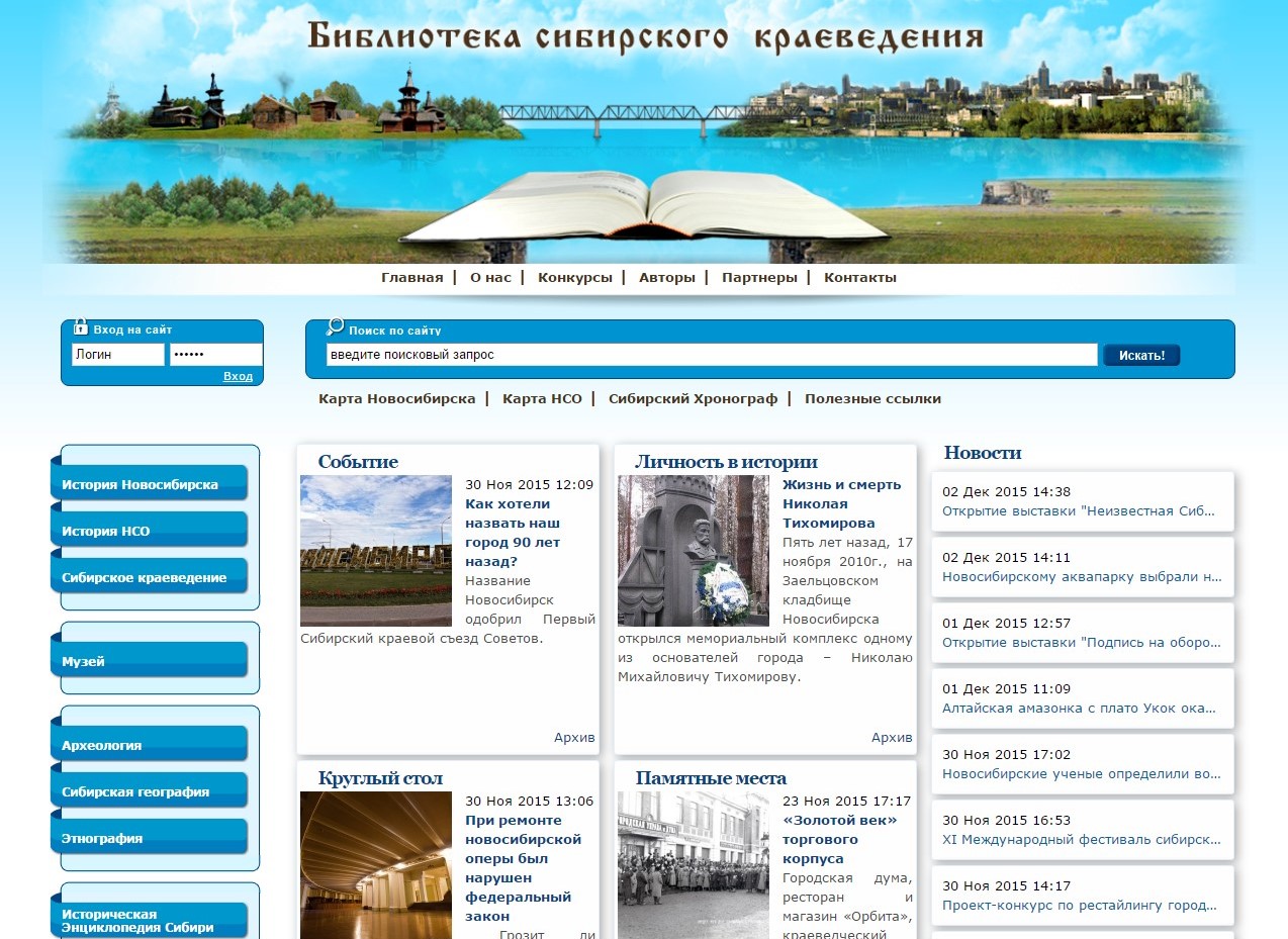 Современный, удобный дизайн позволяет быстро находить нужную информацию. Основная база данных «Библиотеки сибирского краеведения» сосредоточена в трех разделах: «История Новосибирска», «История НСО» и «Сибирское краеведение». Интересен для читателей и раздел «Онлайн-музей города Новосибирска». Это уникальный, совместный проект Музея города Новосибирска и Городского центра информатизации «Эгида», позволяющий всем желающим посетить музей, не выходя из школы или дома: здесь можно прогуляться по виртуальным экспозициям и выставкам, рассмотреть интересные экспонаты, посетить виртуальную экскурсию, увидеть в прямой трансляции музейные мероприятия, такие как Ночь музеев, День города, принять участие в интересных конкурсах и викторинах, посмотреть редкие кадры истории нашего города.