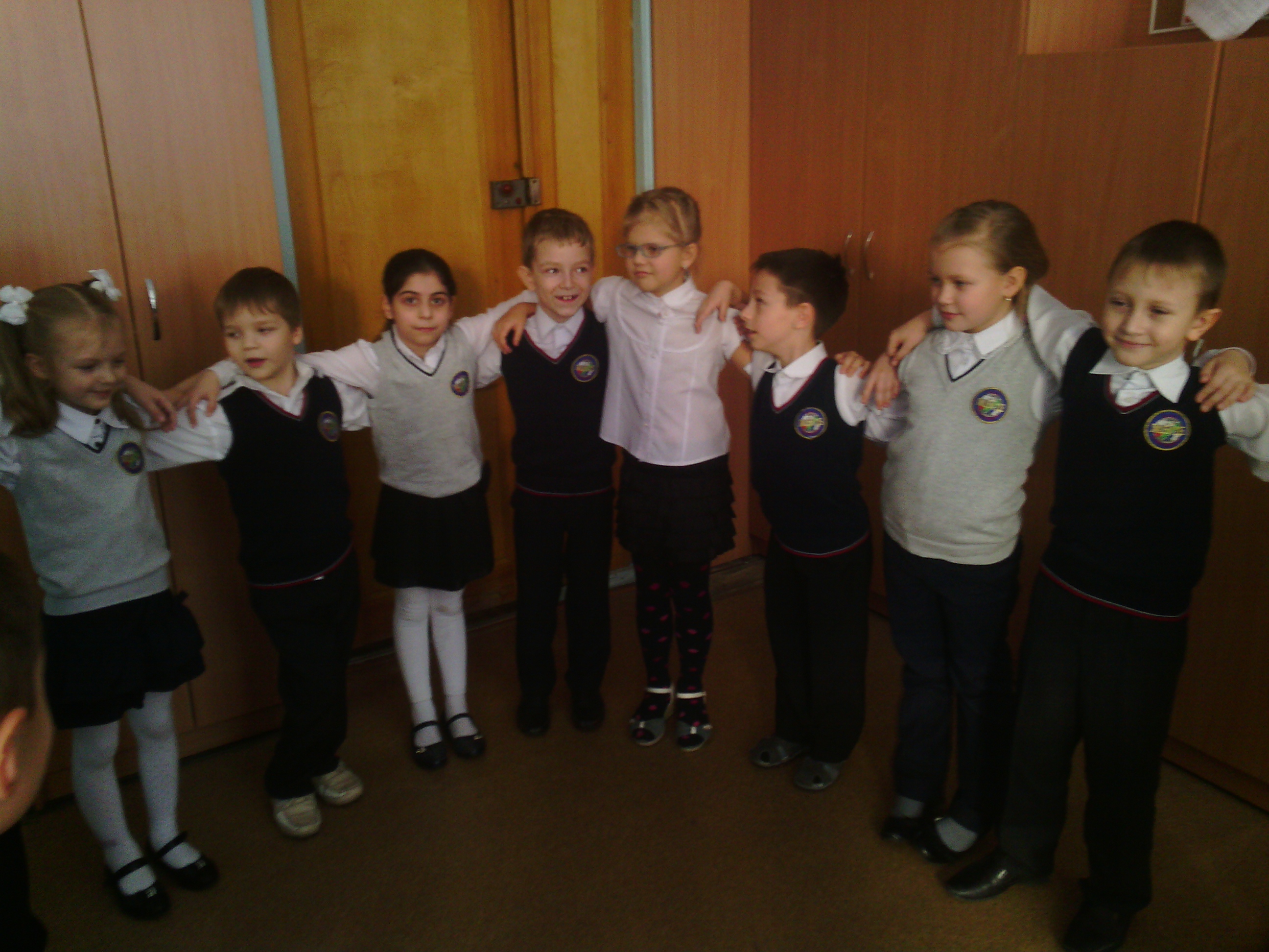 – Ребята, давайте все встанем в круг. Я хочу, чтобы этот круг стал кругом толерантности. Положите правую руку на плечо своему однокласснику. Это будет означать, что у вас есть друг, на которого можно опереться. Левой рукой обнимите своего товарища слева. Это значит, вы готовы поддержать друга.