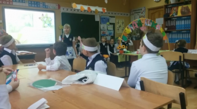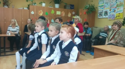 6 октября мы пригласили в 1 класс бабушек и дедушек. Это был первый урок. Мы решили подарить нашим бабушкам живое общение. Дети рассказали о традициях класса, девочки станцевали танец осенних листьев, мальчики-грибочки – станцевали присядку.