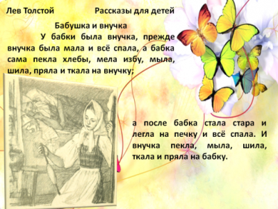 Марина прочитала рассказ Л. Толстого «Бабушка и внучка».