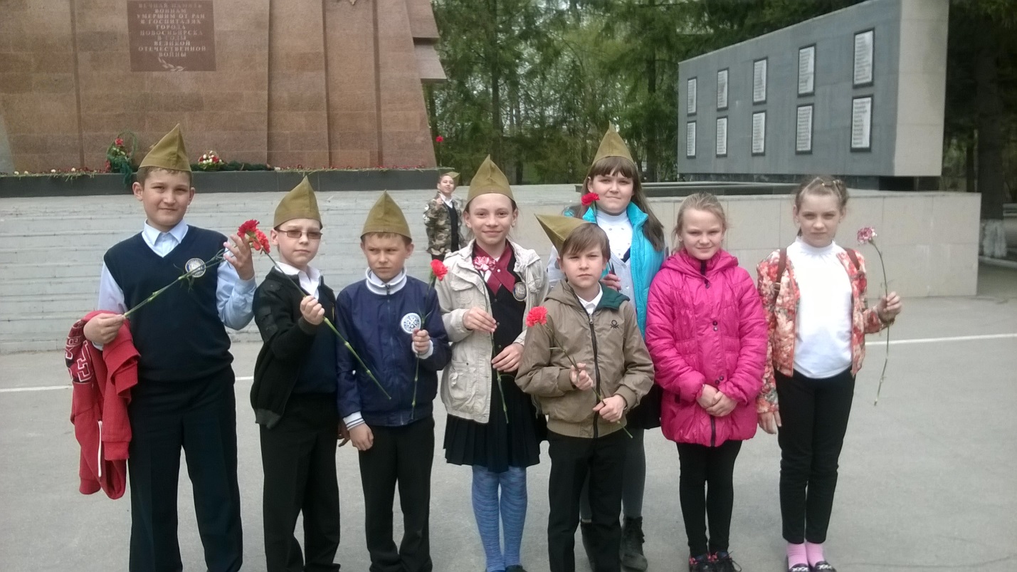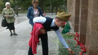 После классного часа мы пошли к памятнику военным в парк «Берёзовая роща» и возложили цветы.