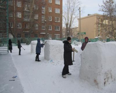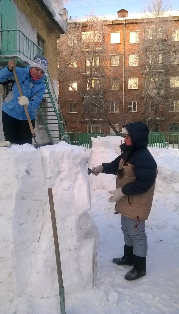 В процессе творческого проекта педагоги, дети и родители создали своими руками фигуры из снега: «Теремок», «Лабиринт», «Дед мороз», «Снегурочка», «Медведь с коробом» из сказки «Маша и медведь», «Коза» из сказки «Семеро козлят», «Емеля на печи». Вместе с этими сказочными персонажами дети познают мир, знакомятся с творчеством русского народа, учатся думать, сочинять, творить. При строительстве снежных построек использовали бескаркасную технологию. А завершился проект праздником «Зимняя сказка». Дети и родители соревновались и веселились от души, получили заряд бодрости, здоровья и хорошее настроение.