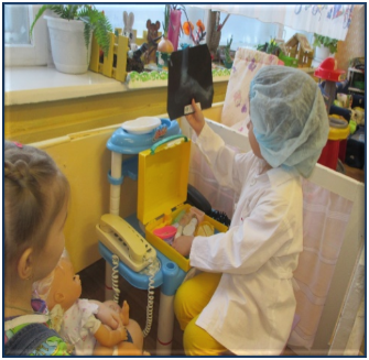В организации развивающей среды группы, опираюсь на принцип сочетания привычного и неординарности. Ведь зачастую даже в название можно вложить звучание красоты. В нашей группе открылась «Поликлиника Неболейки», мини-стадион «Растишка», дизайн-мастерская «Фьюжн», мини-маркет «Вкусняшки». Эстетическое оформление и необычные названия несомненно будут способствовать эстетическому развитию малышей.