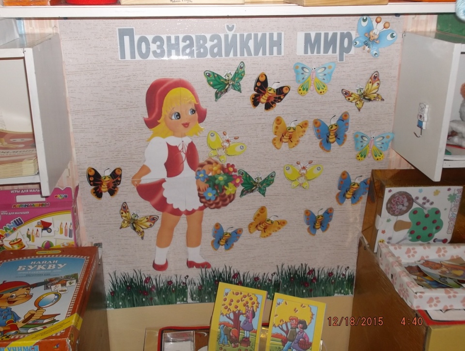 На первом этапе работы совместно с родителями создали развивающую среду, которая помогает решать задачи развития познавательной деятельности наших воспитанников. При этом мы учитывали основные принципы ее построения: доступность, эстетичность, безопасность, учет индивидуальных особенностей детей, а также резерв свободного места, возможность доступно брать игрушки, наглядный материал, атрибуты, что позволяет детям самим менять среду, трансформируя ее в соответствии с видом игры и их интересами. В группе имеются: центр экспериментирования, уголок исследователя, центр изобразительной деятельности, центр музыкально-театрализованной деятельности, центр дидактических игр и др.