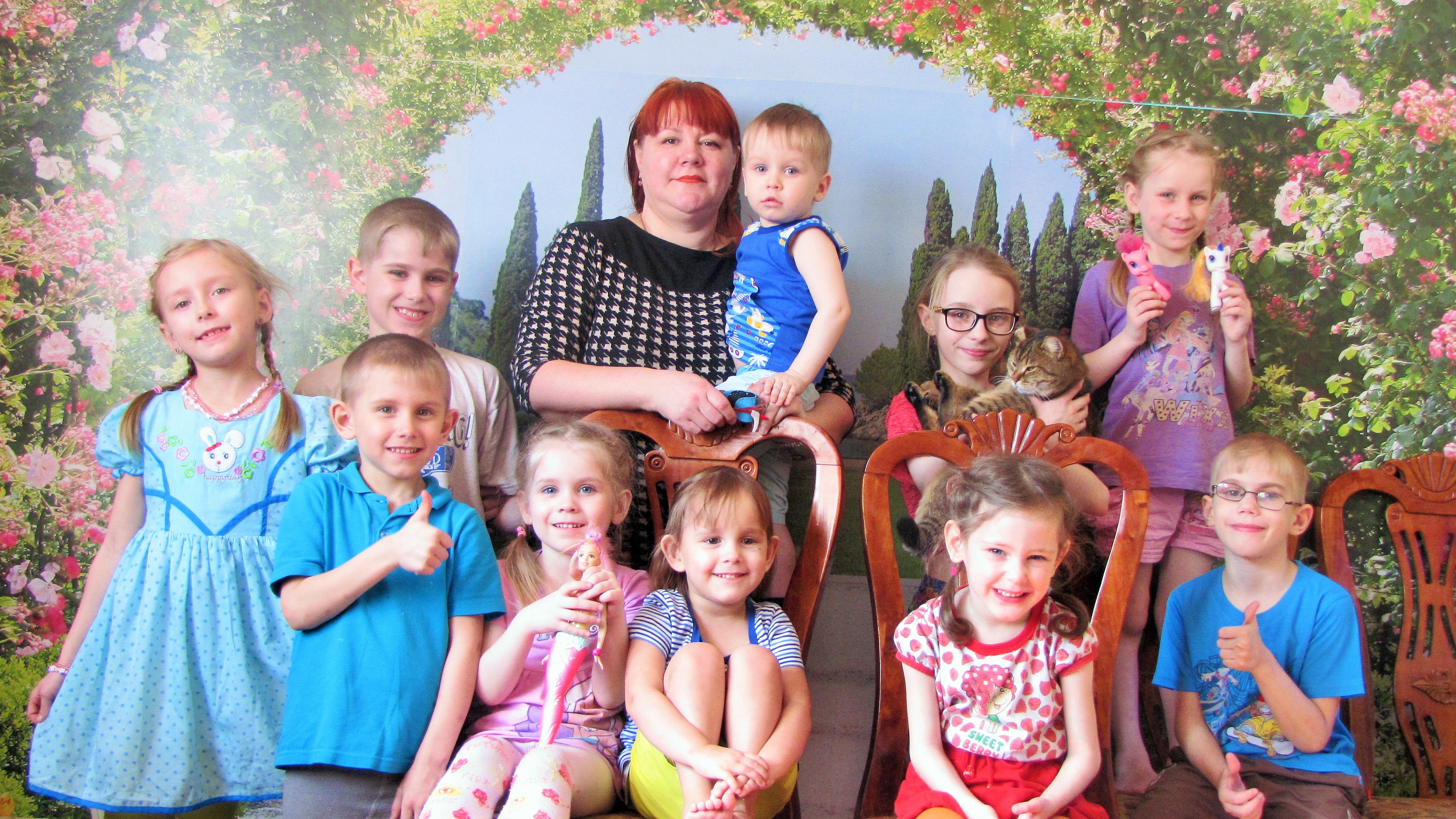 Наш старший сын давно хотел братика или сестрёнку, но мы не могли иметь детей по биологическим причинам. Тогда ему было одиннадцать лет. Он нас всячески уговаривал: «Я знаю, где рожают детей, пойдёмте, я вас туда отведу». Поразмыслив, мы обратились в районный отдел опеки, где нам разъяснили, что существует несколько форм устройства ребёнка в семью, и посоветовали стать приёмной семьёй. Это было в 2007 году. Потом, через три года, мы взяли Витю с Алёшей, потом ещё Вику, Колю, Сашу и Машу. Последних — Настю, Тимошку и Катю — в прошлом году.