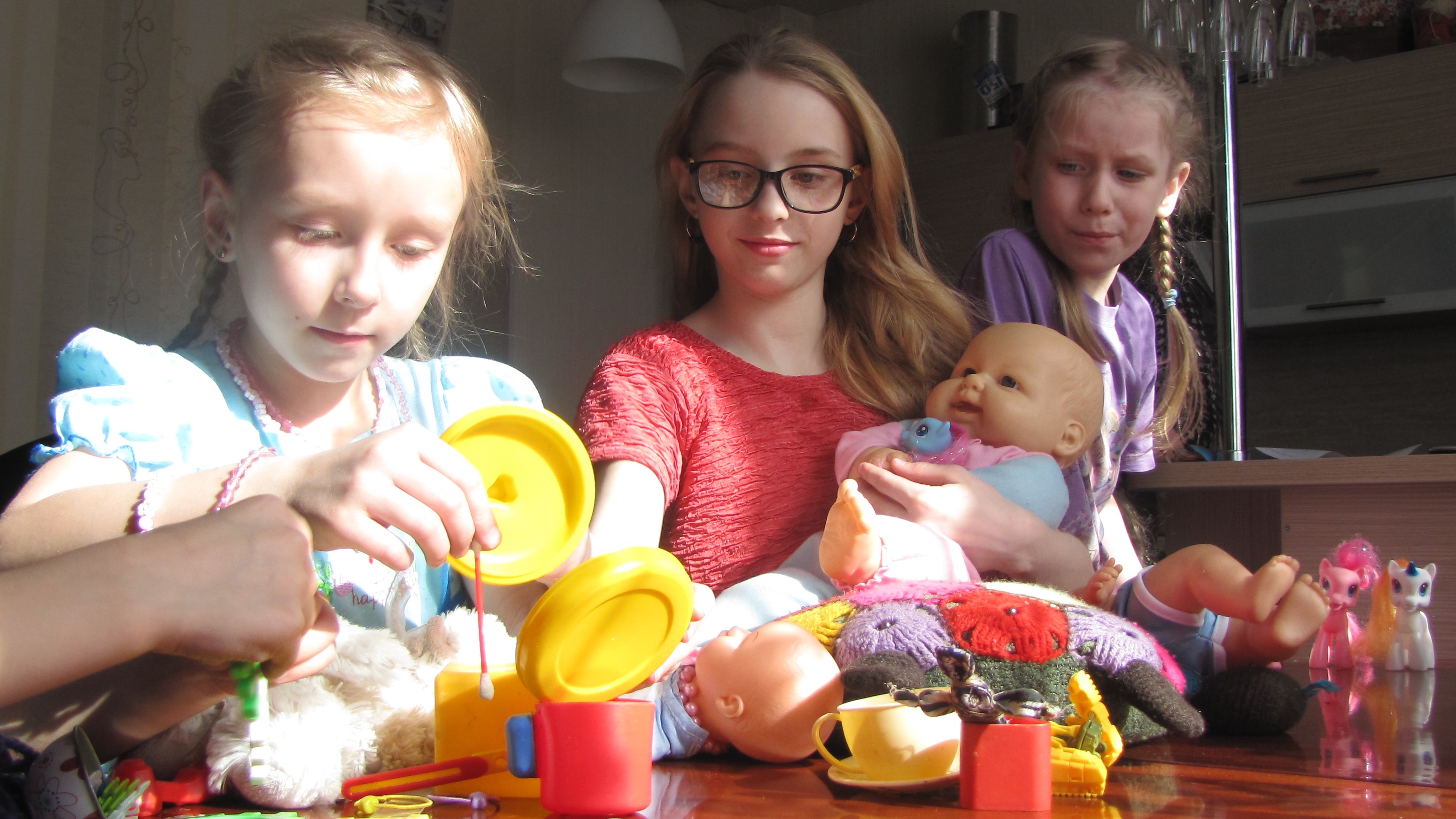Нет! Вике, второй Вике, Харламовой, было пять лет, когда мы её забрали. Ей было сложно привыкать к новой обстановке и к тому, что теперь все вопросы за неё решают взрослые, ведь до того как она попала в нашу семью, она была как мать для брата и сестры. Возникают споры между Виками, каждая старается отстоять свою точку зрения. Но ничего, сейчас всё хорошо. Двое старших, Вика с Витей, уже три года занимаются в бассейне, тренер перевела их в спортивную школу. Вика сдала на первый юношеский разряд, Витя занимает призовые места. Дети все хорошие. Мы их любим, они помогают нам во всем. Мне не нравится, когда говорят «приёмные дети». А как по мне — они все родные. Мы с мужем не заостряем внимания на том, что они к нам откуда-то приехали, но говорим правду, если они начинают спрашивать про своих кровных родственников.