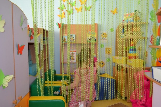Наряду с возможностью общения и совместной деятельности у детей должна быть возможность для уединения (п. 3.2.2 ФГОС ДО). Поэтому в каждой группе были созданы Центры психологической разгрузки или уголки уединения. В летний период на территории возникла площадка психологической разгрузки. На площадке воспитателями была проложена тропа здоровья, создан пруд, установлен домик для уединения, тренажеры для силы и ловкости, таблички с изображениями различных эмоций, материалы для снятия психоэмоционального напряжения. Площадка стала одним из любимых мест для многих ребят нашего садика.