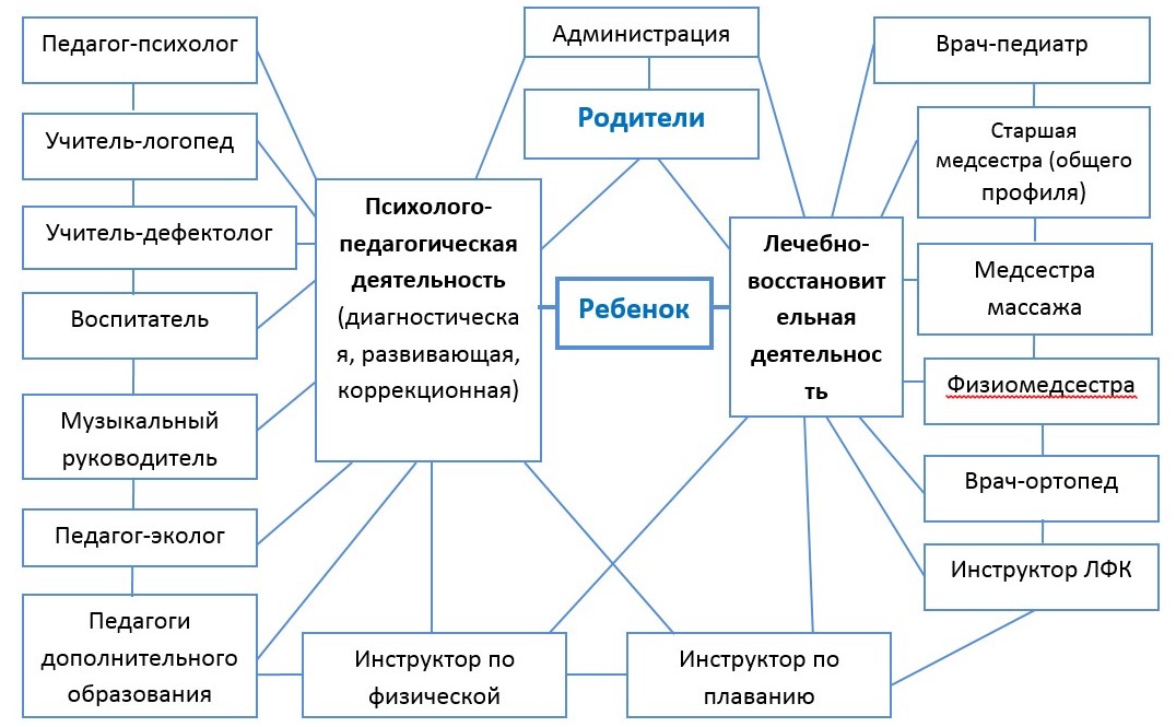 Организованное в 2014-2015 учебном году командное взаимодействие специалистов, призванное обеспечивать успешное осуществление образовательного процесса в ДОУ, нуждалось в придании системного характера, в включении дополнительных ресурсов, в единении усилий всех субъектов. Перед началом 2015-2016 учебного года нам удалось расширить состав психолого-педагогического консилиума за счет привлечения медицинских и педагогических специалистов – врача-педиатра, врача-ортопеда, старшей медицинской сестры, медицинской сестры по массажу, инструктора ЛФК, учителя-дефектолога (на договорной основе, как педагога дополнительного образования).
