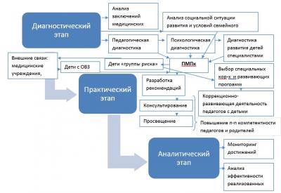 1. Диагностический этап имеет целью выявление трудностей развития детей, проведение их комплексного обследования, подготовка рекомендаций по оказанию им психолого-медико-педагогической помощи.