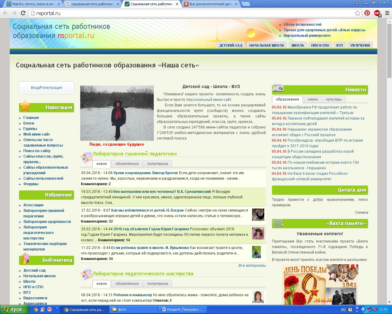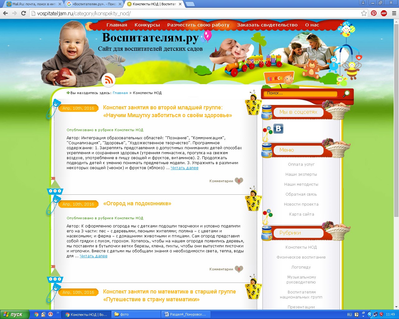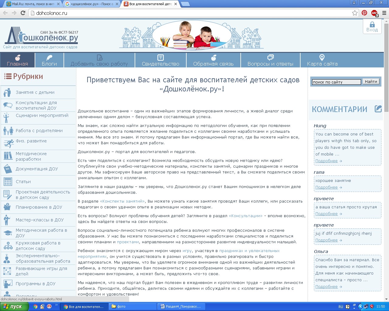 Рассмотрим популярный сайт «Воспитателям.ру».