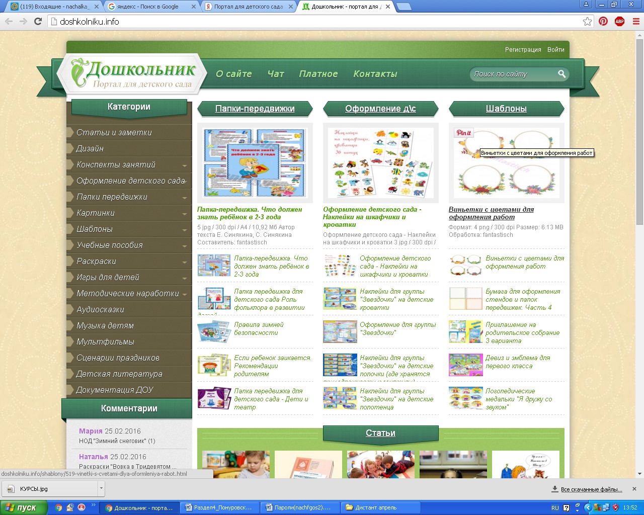 Обратимся к сайту «Портал для детского сада».