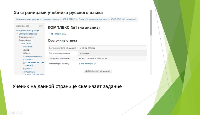 При разработке уроков каждая мелочь играет роль. Ученик открывает страницу урока и ему должно быть все понятно. Рядом учителя нет и только он и его родители должны понять, какую задачу должен выполнить ребенок. Нужно было правильно выбрать элементы курса и ресурсы. Объем, цвет, оформление текста, выбор шрифта. Выбор ролика, вид документа и другие привлечённые ресурсы должны соответствовать возрасту и теме.