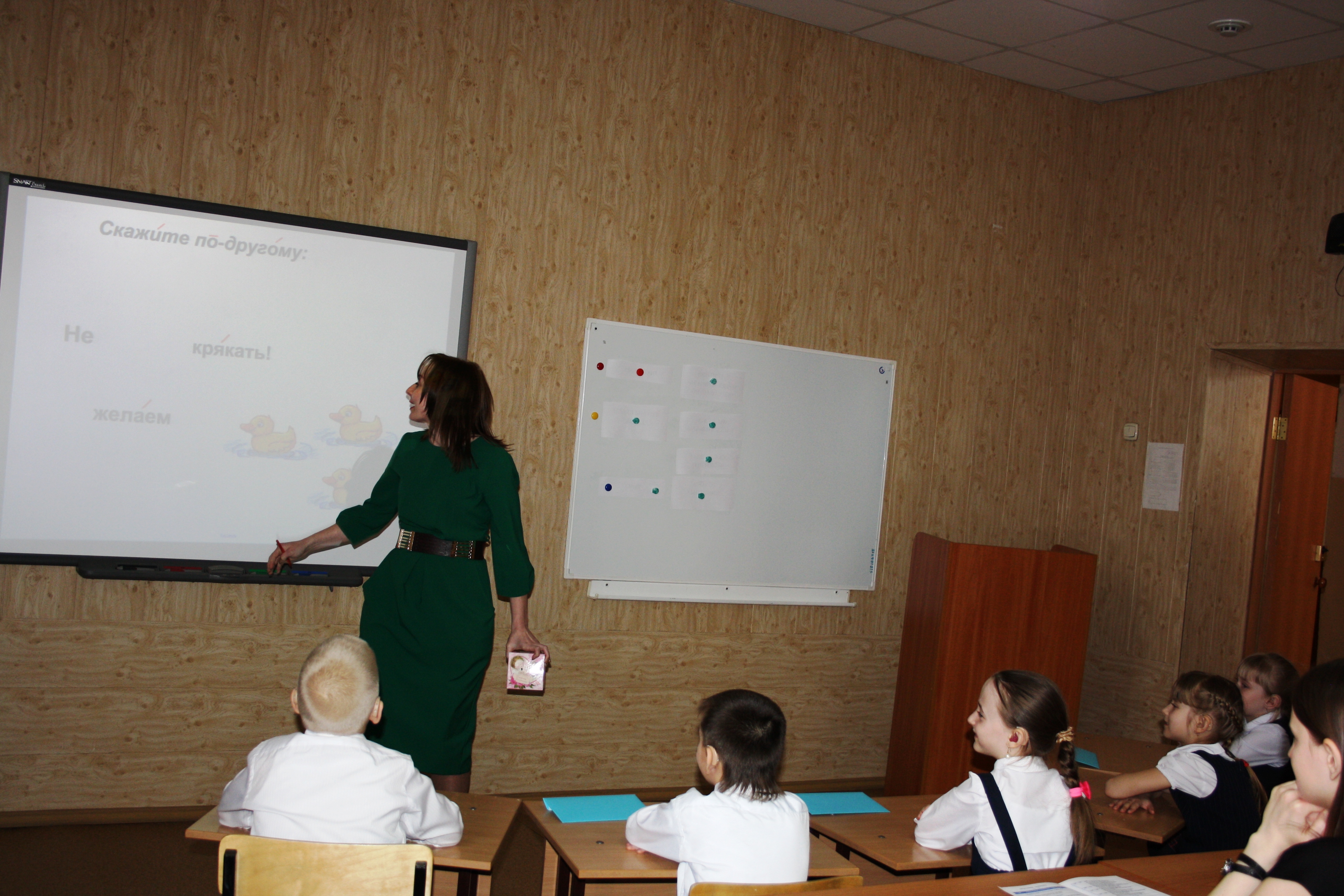 При работе над развитием восприятия и воспроизведением устной речи у школьников с нарушением слуха главной задачей учителя является пробуждение речевой активности у обучающихся. Учителю на уроке необходимо увлечь ребёнка, сделать так, чтобы он захотел высказаться. Использование на уроках электронной интерактивной доски вносит в учебный процесс новое качество. Интерактивная доска позволяет учителю шире использовать методы и приёмы проблемного обучения. Используя заранее заготовленные задания и разговорные фразы для восприятия на слух, учитель экономит время. Вместо мела на доске можно писать, рисовать, чертить цветными «чернилами», передвигать электронные иллюстрации, прятать изображения, вследствие чего повышается мотивация в процессе урока.