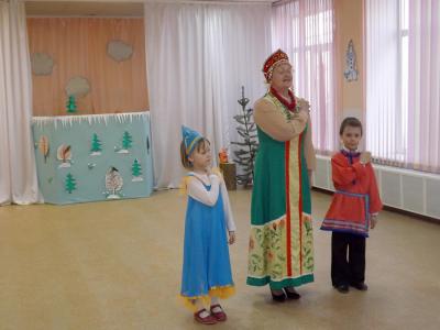Под руководством педагога дети на занятии погружаются в обстановку русской старины, фольклора: приветствие, народные стихи, потешки, заклички, хоровод. Дети учатся согласовывать слова с движением, слушают старинные русские песни и мелодии, участвуют в театрализованной деятельности, знакомятся с атрибутами мужской и женской одежды на Руси (кушак, рубаха - косоворотка, штаны, сарафан, кокошник, лапти).