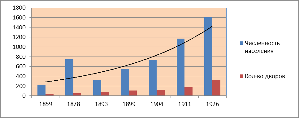 Рис. 1. Динамика количества дворов и численности населения в Толмачёво