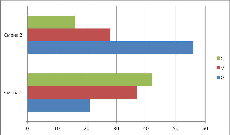 Все эти занятия с ребятами я проводила на следующей смене. Анализ экрана настроения показал следующее: