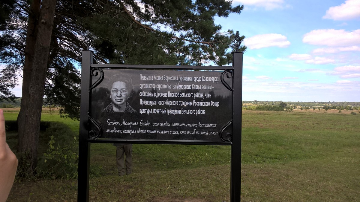 В этом году на Мемориале Славы воинам-сибирякам в Бельском районе открыта памятная доска организатору создания мемориального комплекса Ксении Пальминой.