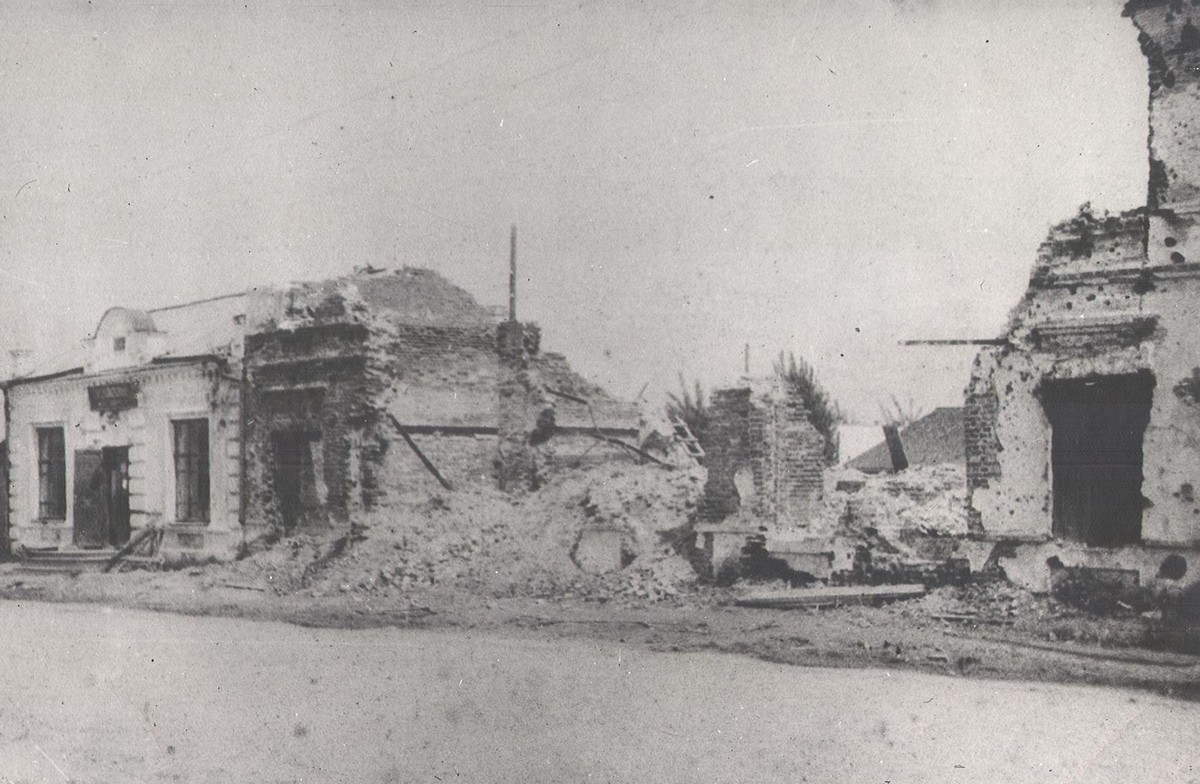 Нам, как новосибирцам из далекого тыла, сложно было осознавать, что здесь шла война – город был захвачен немцами и полностью разрушен, уцелевшими осталось не более шести зданий, тысячи жителей были убиты, захвачены в плен, отправлены в Германию. До войны население города составляло 16 тыс. человек, сейчас в нем проживает чуть более 3 тыс. человек. Последние разрушенные здания закончили отстраивать в семидесятые…