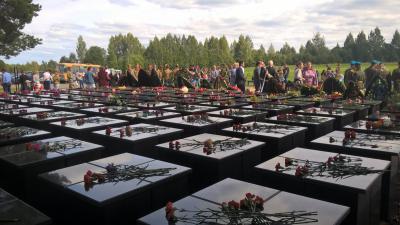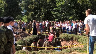 В торжественной обстановке, с соблюдением воинских и духовных почестей были перезахоронены останки 343 красноармейцев, поднятых на территории района в ходе поисковых работ «Вахты памяти – 2016».