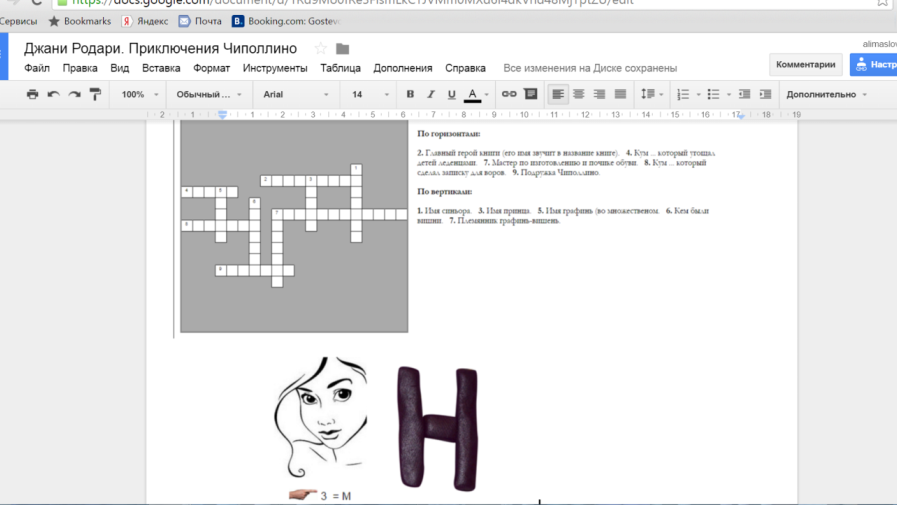 Проект «Занимательные задания по книге Д. Родари "Приключения Чиполлино"» – первый опыт работы в совместном Google-документе. Цель проекта – создание сборника занимательных заданий по прочитанной книге. В проекте принимали участие ученики, посещающие Клуб любителей чтения «КЛЮЧик». В ходе работы ребята научились составлять кроссворды, используя сайт «Фабрика кроссвордов», познакомились с генератором ребусов rebus1.com, научились генерировать ребусы, вставлять в документ и ребусы, и другие изображения. В результате получился интересный сборник, задания из которого использовались на уроках литературного чтения для всего класса.