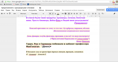 Получив навыки, необходимые для работы в совместном документе, учащиеся с интересом приступили к новой для них форме работы.