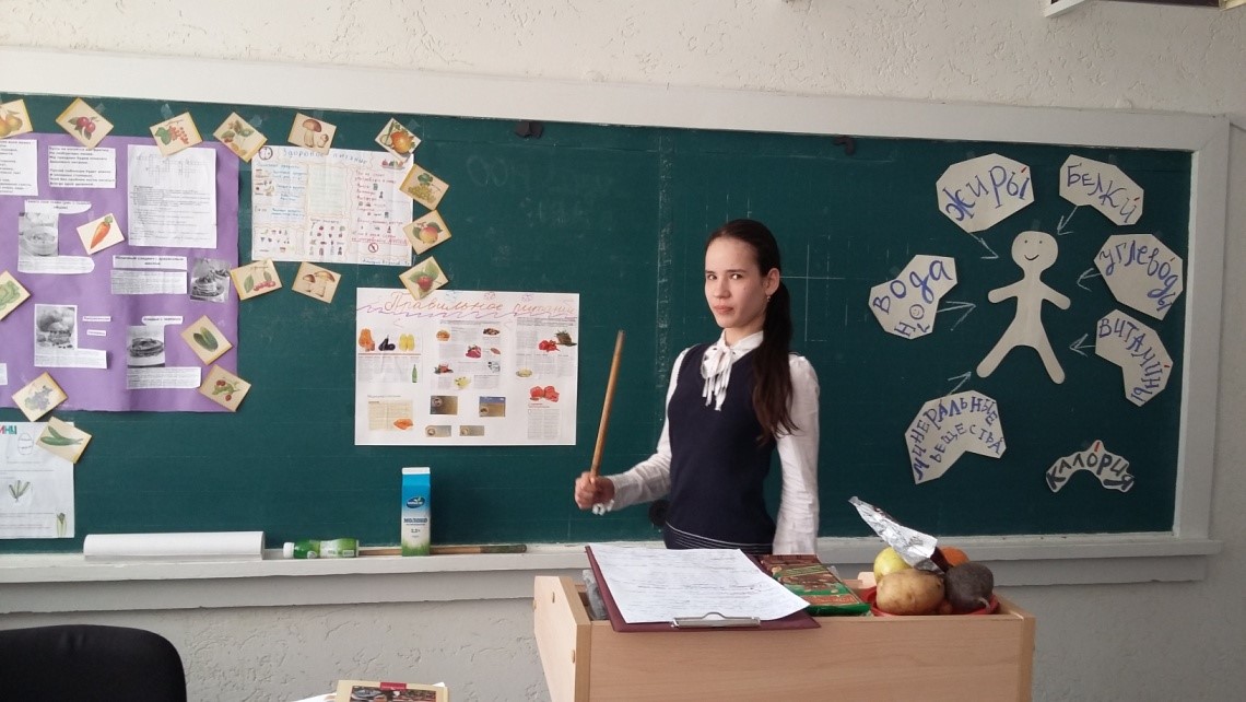 Уч-ль демонстрирует продукты с комментированием – на всех продуктах обязательно указывается содержание белков, жиров, углеводов и количество калорий на 100 гр. продукта. Путем нехитрых математических вычислений каждый сможет подсчитать, сколько калорий получил с пищей. Норму в 2 тыс. ккал. не превышать!