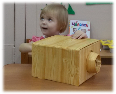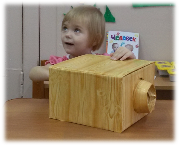«Волшебный ящик», ожидавший детей в группе, был самым привлекательным пособием для малышей, каждый хотел узнать, что в нем сегодня спряталось. Ребята с любопытством продевали руки в рукава и нащупывали находящиеся там игрушки или другие предметы. В этот момент они отвлекались от неприятных переживаний, присущих периоду привыкания к детскому саду, и в дальнейшем с увлечением играли с найденными предметами и игрушками, что вызывало у них массу положительных эмоций.