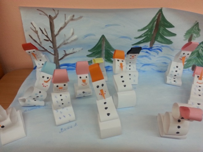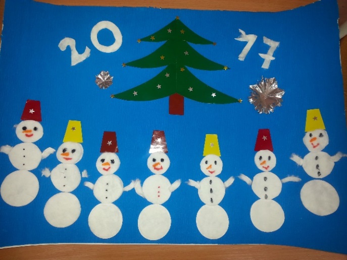 2. Коллективная работа по художественному творчеству (аппликация): «Снеговики». |