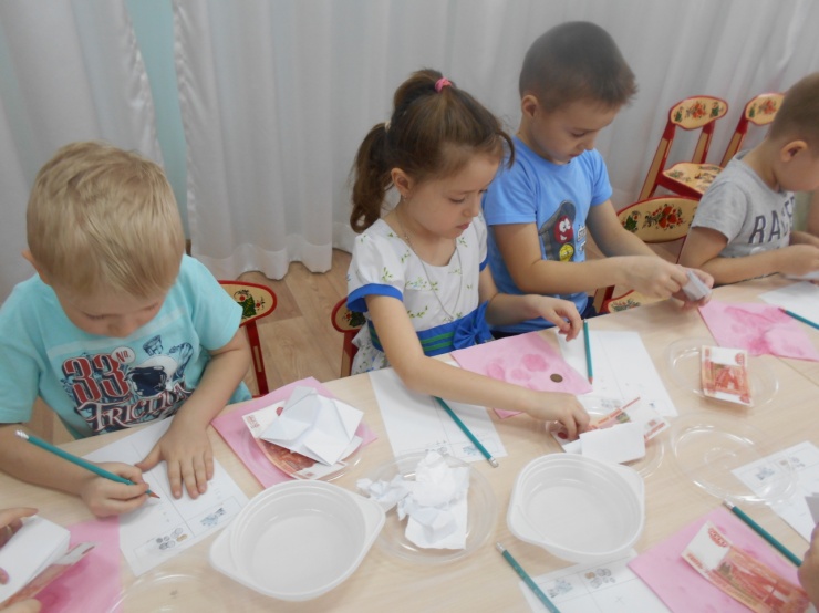 На этом занятии я обобщила полученные знания детей о деньгах и для большего интереса мы с детьми посетили «Лабораторию», где наши «юные исследователи» проводили эксперименты с деньгами, чтобы определить, какие деньги удобнее и надежнее в использовании. Мои ожидаемые результаты полностью оправдались – дети получили определенные знания, сделали интересные выводы, на практике лично убедились в свойствах денег.