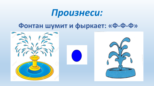 Звук (ф) – фонтан шумит (движения руками снизу-вверх и разведение их в стороны аналогично движению водяных струй);