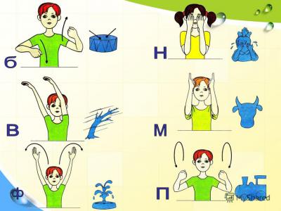 При изучении согласных звуков к зрительной опоре можно добавить и жесты. Жестовый символ в сочетании с зрительным создают точный и устойчивый образ каждого изучаемого звука. Согласные звуки предлагаю в порядке увеличения сложности их восприятия.
