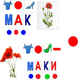 1. Даём ребёнку картинку, символы звуков, буквы.