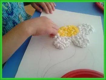 – выкладывание комочками контур предмета: цветок, солнышко и т.д.