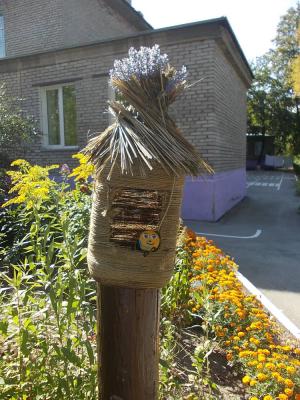 Так, при входе на площадку 1-ой младшей группы нас встречают самые трудолюбивые насекомые… конечно, это пчелки! Живут они в домике, сделанном руками воспитателей. Можно увидеть солнышко, которое в любую погоду радует малышей. А рядом с верандой лежит рыжий кот, который встречает и провожает детей с прогулки домой.