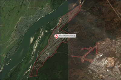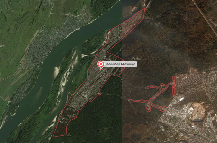 Рис. 1. Посёлок Мочище сегодня. Снимок из космоса