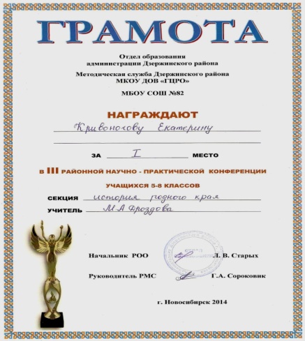 Одной из составляющих проекта является участие ребят в районных и городских конкурсах по истории родного края, где они могли применить свои знания и умения.