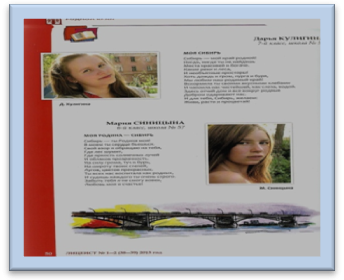 5. Выполнение самого проекта (сроки зависят от темы и работы). Реализуем в следующих проектах: конкурс книгочеев. Например: Историко-литературоведческая номинация. Номинация иллюстративная. Поэтическая номинация – ученики представляют стихи о Сибири, о Новосибирске собственного сочинения.