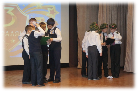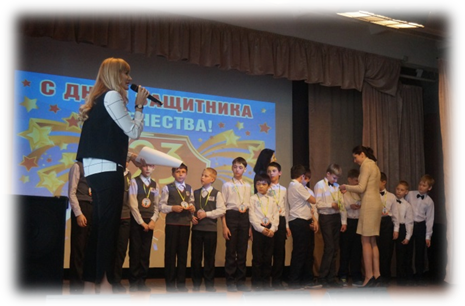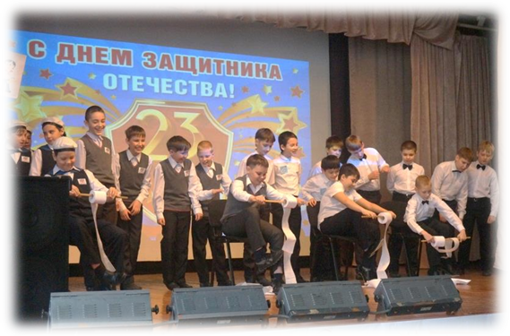 Вот и подошёл к концу наш праздник. Мы ещё раз поздравляем всех мальчиков, мужчин с Днём защитника Отечества. Желаем вам здоровья, хорошего настроения, крепкой дружбы на долгие года и успехов в учебе, мирного неба над головой.