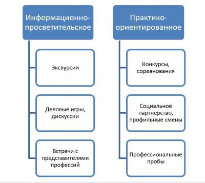 Практическая направленность форм профориентационной работы с учащимися среднего и старшего школьного возраста позволяет им на собственном опыте узнать о своих индивидуальных качествах и способностях, а главное, самим соотнести свой природный и накопленный потенциал с требованиями конкретной практической деятельности в различных сферах труда.