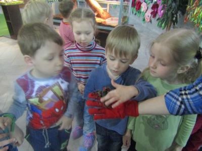Дети знакомятся с растениями, животными и одновременно с условиями их обитания, а это способствует образованию первичных представлений о взаимосвязи в природе. Для поддержания интереса детей вводим встречу со сказочным героем.
