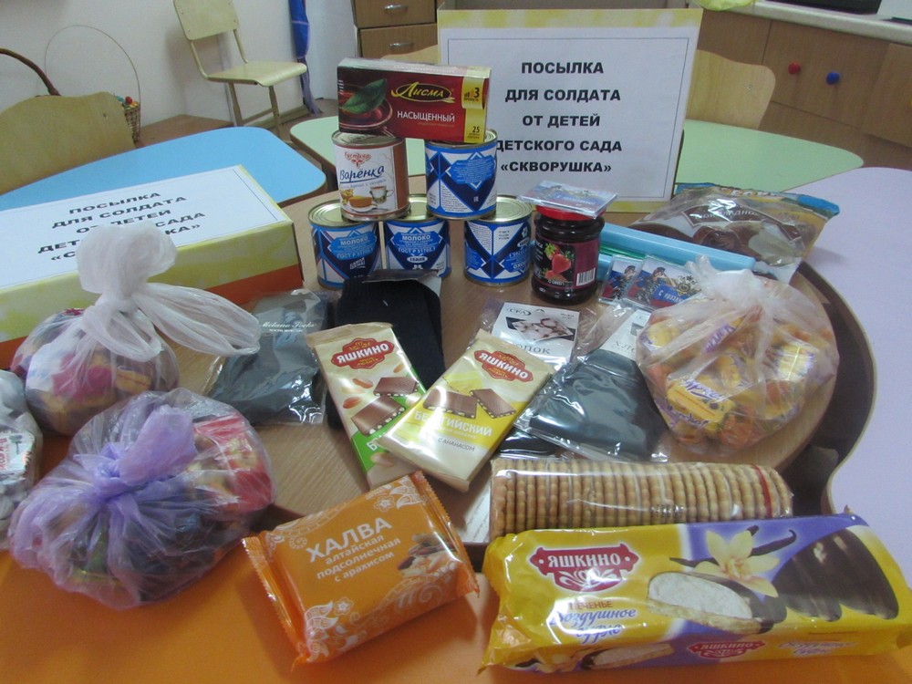 Мы сделали этот праздник незабываемым, радостным событием в жизни детей. Педагоги, дети и родители приняли активное участие в его подготовке и проведении. Вместе мы готовили атрибуты к празднику, тренировались в проведении эстафеты на улице. Также в этом году мы впервые провели акцию «Посылка для солдата». Весь коллектив детского сада, а также родители и дети живо откликнулись на призыв собрать гостинцы для солдат. Ребята подготовили для солдат открытки и поздравительную стенгазету, а родители принесли сладости и теплые носочки для военнослужащих. В конце праздника мы торжественно вручили посылку солдатикам.