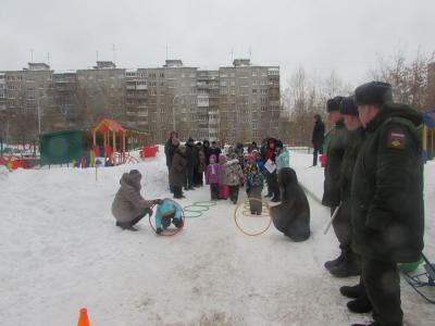 Ежегодно в нашем детском саду проводится военно-спортивная игра «Зарница», посвященная 23 февраля – Дню защитников Отечества. В ней принимают участие воспитанники подготовительных групп и их родители. В этом году главными гостями праздника и его непосредственными участниками стали военнослужащие подшефной воинской части.