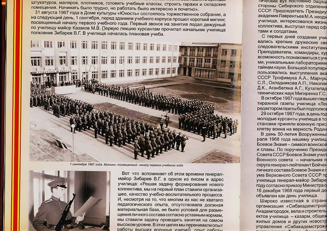 Первая остановка возле контрольно-пропускного пункта Новосибирского высшего военного командного училища. Училищу в 2017 году исполняется 50 лет. Эта дата сама подталкивает на исследовательскую работу по нескольким направлениям: ход строительства, изменения статусов, судьбы выпускников нашего ОЦ, обучавшихся в училище.