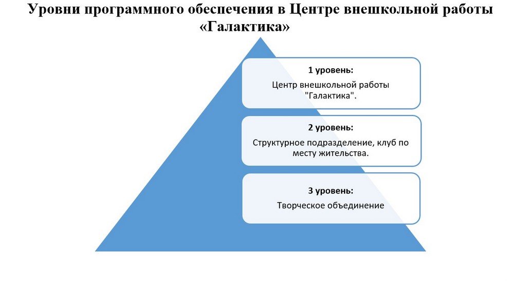 Все общеобразовательные программы разработаны на основе нормативных документов Федерального и муниципального уровня с использованием профессионального опыта педагогов и современных требований педагогической науки. Все программы имеют внутреннюю экспертную оценку на уровне структурных подразделений, методических объединений. Авторские программы имеют внешнюю экспертную оценку. Содержание дополнительных общеобразовательных общеразвивающих программ и сроки обучения по ним, определяются образовательной программой ЦВР «Галактика».