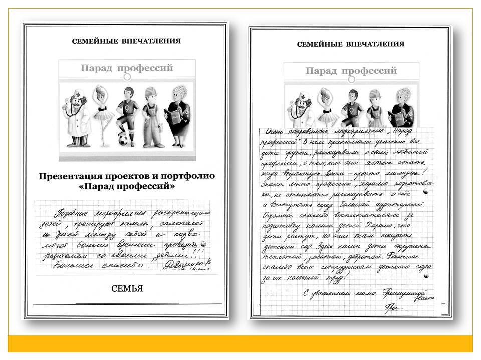 В портфолио детей добавились странички, посвященные проекту «Все работы хороши», самостоятельные исследования на тему «Экскурсия по детскому саду» и фотографии каждой проектной группы, исследования на тему «Кем я хочу стать», рисунки ребят и фотографии с этого праздника.